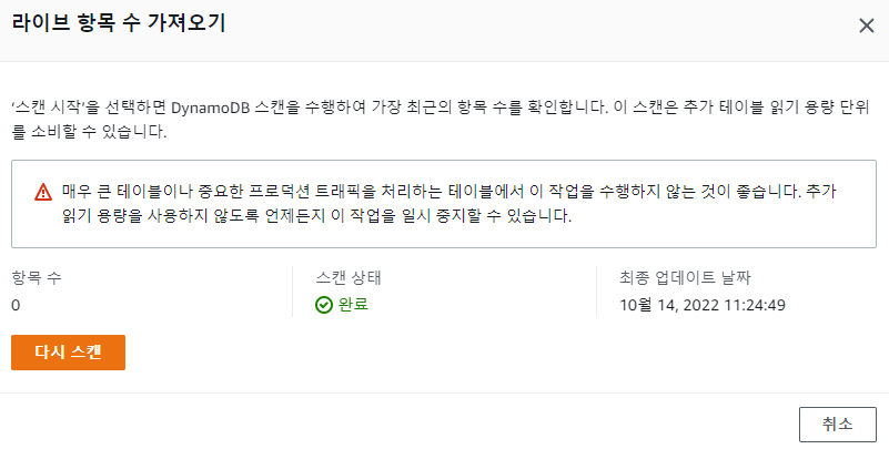 두 개의 터미널(cloud9 -1,2)에서 연결을 종료 시킨 뒤 다시 dynamoDB를 확인해보면...